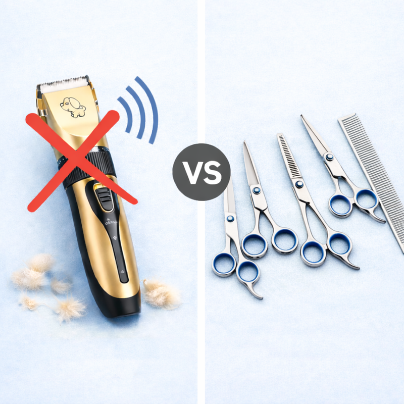 Traditional electric trimmers are loud, intimidating, and stressful for pets — especially around sensitive areas like the face, ears, and paws. Heat, vibration, and sudden noise can cause anxiety, resistance, and even accidental nicks. With quiet, controlled cutting and precision blades, you can groom confidently without startling your pet. The result? Less stress, more trust, and calm, professional-quality grooming at home.